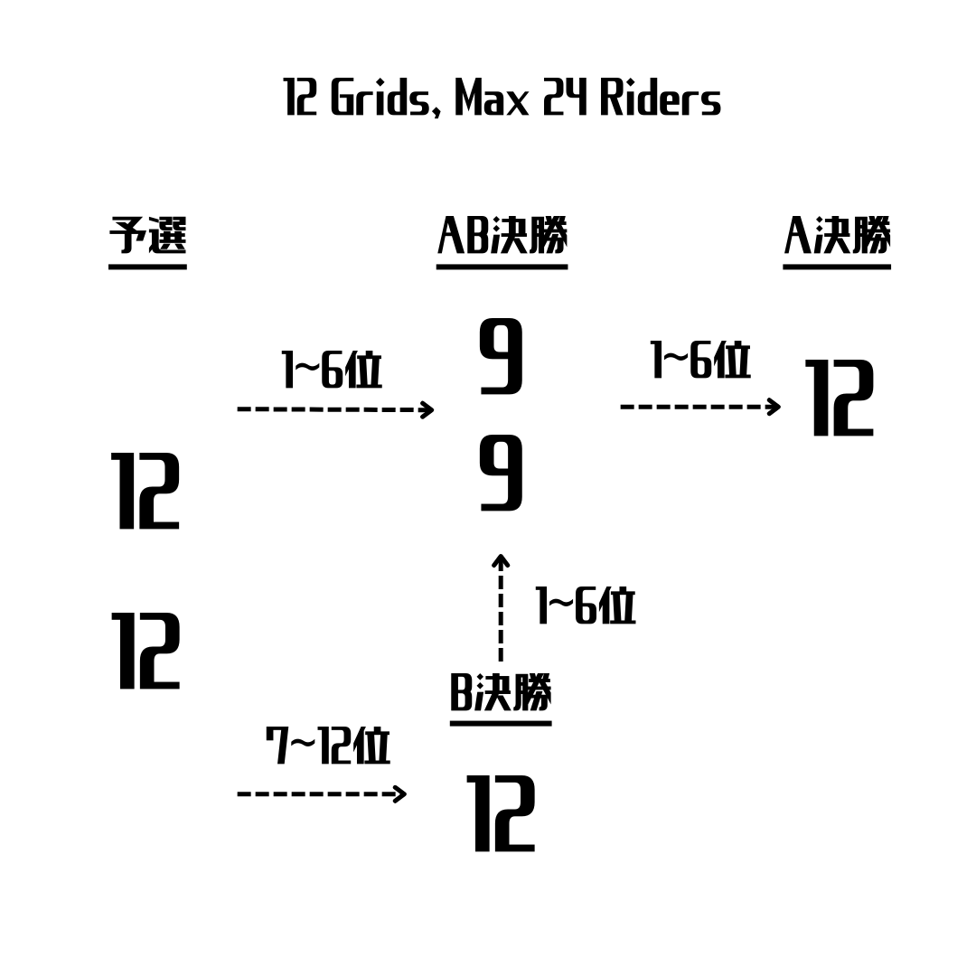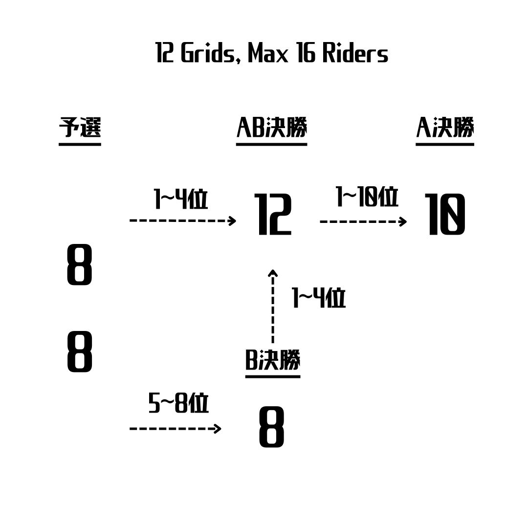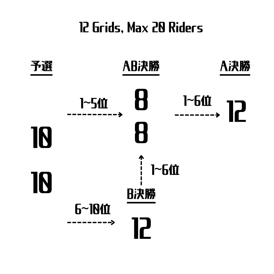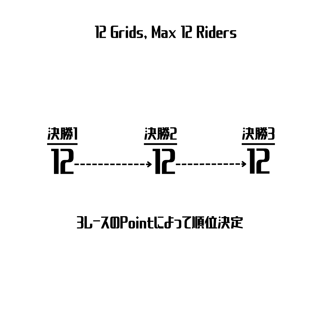 12グリッド / 1ヒート 2回の合計ポイント制+決勝 ~12名